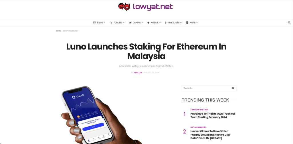 Now! Finally! In addition to buying and selling cryptos on Luno, you can stake your crypto (e.g. Ethereum) in Luno Malaysia and South Africa.
